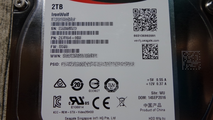 【▼】Seagate IronWolf NAS 2TB HDD正面印有產品的序號與認證標章,最適合居家、家庭辦公室與小型企業 NAS來使用。