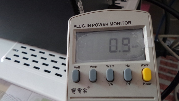 【▼】立馬將AS3202T+Seagate Ironwolf 2TBx1上電測試,未開機時功耗僅耗0.9W。
