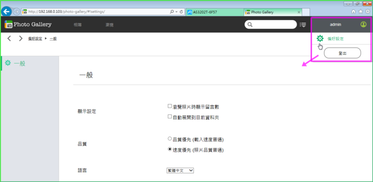 【▼】在Photo Gallery偏好設定中,可顯示照片留言數、自動展開目前資料夾等,照片載入也能依品質或速度而定。