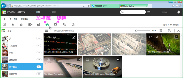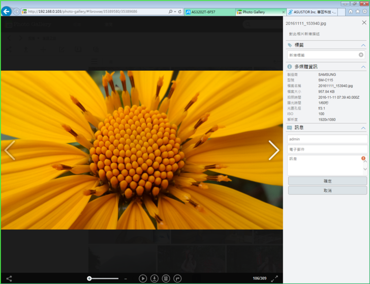 【▼】老實說,「相簿」與「瀏覽」兩大檢視模式,功能上差異不大,這部分建議ASUSTOR可以保留其一,再加入其他額外的新功能,如轉檔、剪裁或是壓縮等。