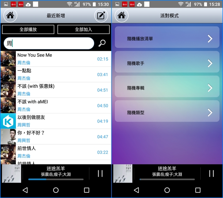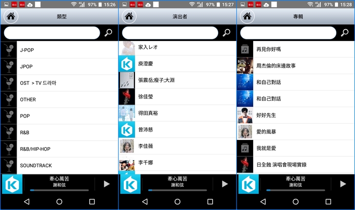 【▼】AiMusic可依音樂類型、演出者、專輯來播放。