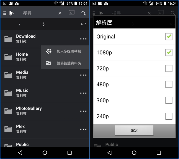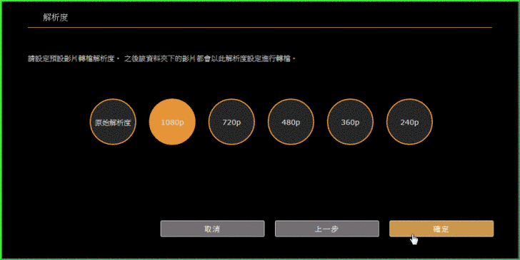 【▼】AiVideos可以針對資料夾進行 " 加入多媒體轉檔"或是 "設為智慧資料夾",不論設定哪一個,都會詢問您要轉的解析度。