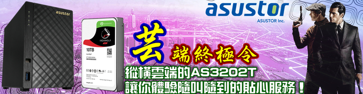 經過三大任務的挑戰,AS3202T都能如期完成任務,真讓各大NAS廠不可小覷這位NAS界的超新星,誰能掌握雲端,就等於廠握全世界,掌握雲端除了基本雲端儲存之外,能無時無刻、任何地點觀看多媒體也是各大NAS廠兵家必爭之地,終極任務除了AS3202T基本開箱與Seagate Ironwolf 那嘶狼效能測試之外,將會繼續介紹多媒體的各項應用,本篇【芸端終極令】分作以下各章節,因篇幅較多,可點選想看的內容,看倌們慢慢瞧來~