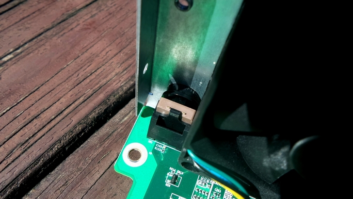 【▼】散熱風扇與機殼的角落旁有個微動開關,也就是AS3202T的電源開關。