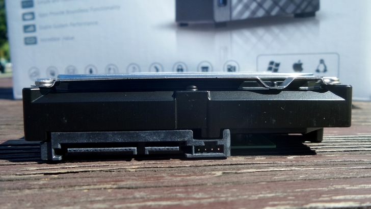 【▼】只要將Seagate NAS HD往內推,即可安插於AS3202T的SATA介面上。