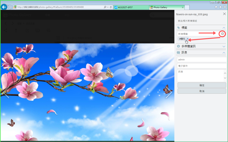 【▼】單一照片加標籤時,記得寫好標籤之後要按下+的圖示按鈕,這樣才會將您的標籤加到照片中,最後記得按下確定鍵。