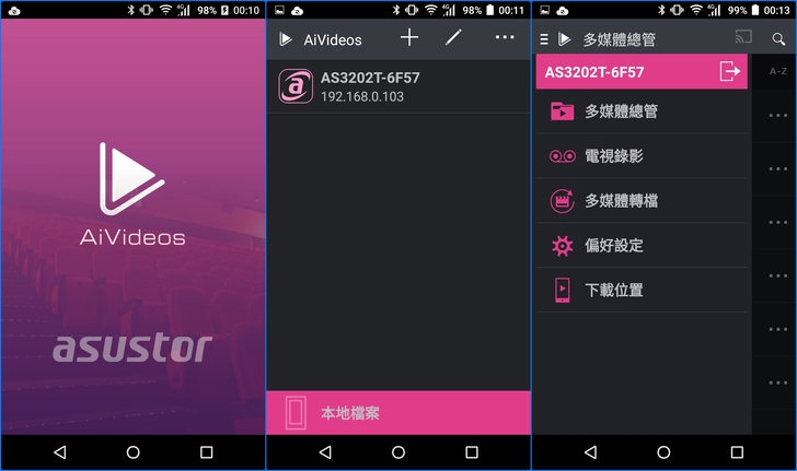 【▼】AiVideos能瀏覽你 AS3202T 中的珍藏影片,無須費時等待漫長下載,一個點擊立即開始享受高清 1080p 影片串流,更可以選擇多國語言字幕搭配觀看甚至選擇不同聲道享受多國原音重現,行動電影院彷彿就在你身邊。首次進入AiVideos可以發現粉紫色的背景竟是電影院,真的向 "電影走到哪看到哪" 來致敬,主要選單有多媒體總管、電視錄影、多媒體轉檔、偏好設定與下載位置的管理等。若行動裝置硬體不夠強或頻寬不足導致播放不順暢時,可以直接變更串流的影片解析度或搭配 MXplayer 來播放,讓你播放影片時更加順暢。