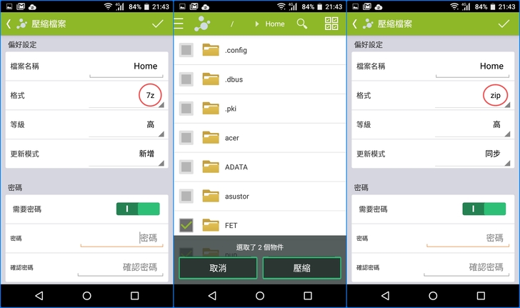 【▼】AiData也可以對檔案或資料夾進行壓縮,方便打包寄給他人,壓縮格式有7z與zip,壓縮率越高則壓縮速度越慢,更新模式一般預設為新增即可。