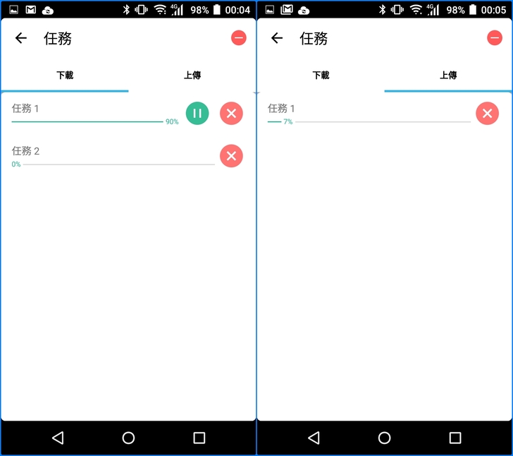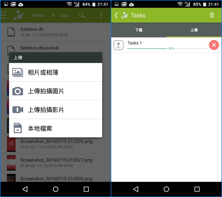 【▼】由於是行動裝置,所以下載是從NAS下載照片到行動裝置本地端,而上傳是指從行動裝置本地端傳到NAS上,任務一覽可觀看各任務進度。
