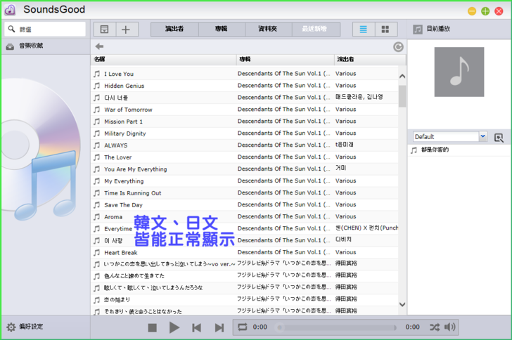 【▼】SoundsGood能支援韓文與日文歌曲,喜愛東洋風的朋友們真的有福囉~