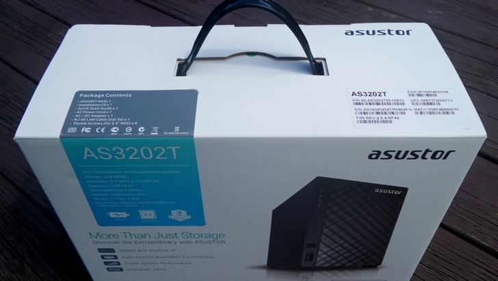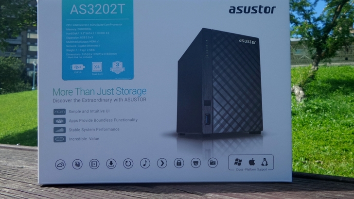 【▼】AS3202T包裝外箱承襲AS3102T清爽的風格,英文More Than Just Storage告訴大家,Asustor AS3202T除了能儲存資料外,後續所帶來的效應是遠大於傳統NAS的,包含多媒體影音播放與強大的行動App支援。天藍色的貼紙是2Bay的AS3202T最重要的硬體特點,如四核心的處理器、2GB DDR3L RAM、最高支援20TB、三個USB連接埠、Gigabit乙太網路,最重要更提供了三年保固,有堅若磐石的味道!