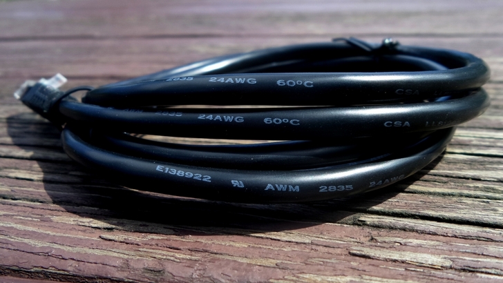 【▼】乙太網路線則是線徑24 AWG、耐溫60度C的規格,長度非常夠用,讓AS3202T不一定要放在電視或電腦旁邊,進而增加了空間彈性。