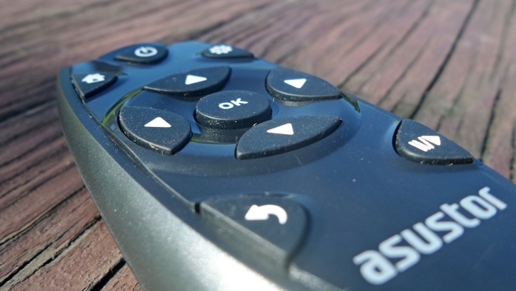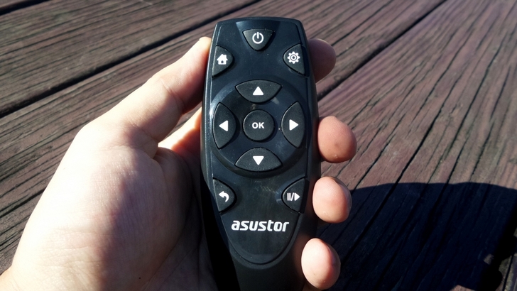 【▼】AS3202T是一台多媒體NAS機,所以有提供紅外線遙控器作多媒體播放的控制。AS3202T遙控器共有10顆實體按鍵,小編一隻手能完完全全的掌握住;不過包裝內容物上沒有寫到是原本就附有的裝置,所以應該是屬於選購的產品。