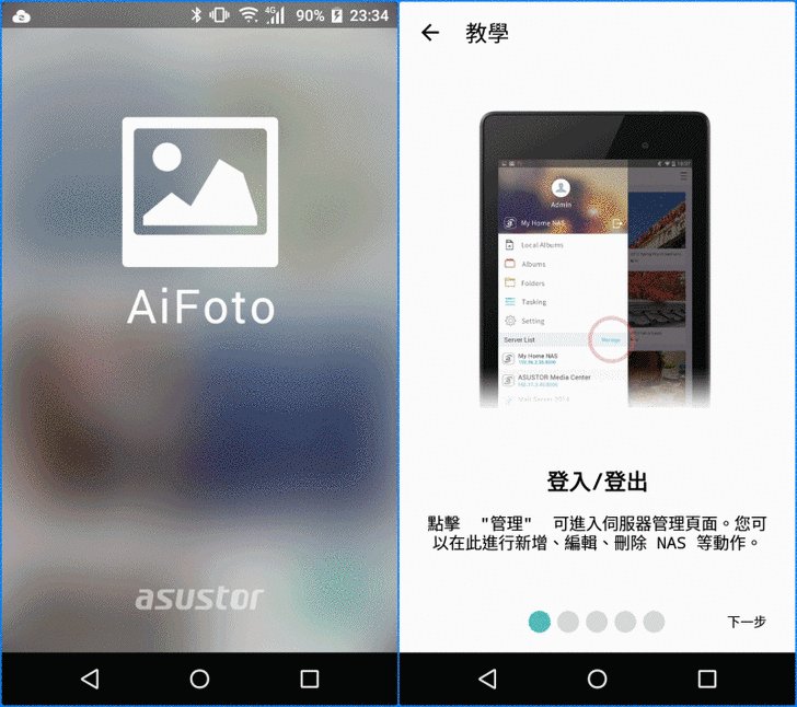 【▼】行動方面的Photo Gallery就是AiFoto,第一次進入有簡易的教學指南,最實用的功能就是在外拍完照能直接上傳到家中的AS3202T中。