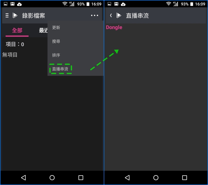【▼】AiVideos->電視錄影中,必須要插上Dongle電視棒(如 Chromecast)才能進行錄影或植播串流的動作。