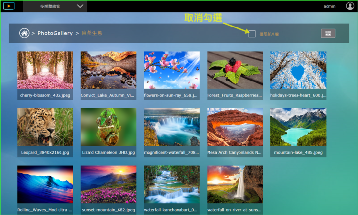 【▼】圖片的顯示方式提供了有1:1、4:3、16:9或以相片牆方式展示。