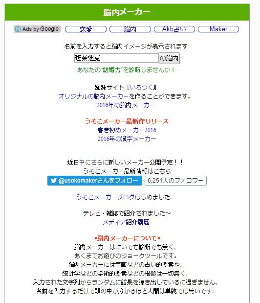 STEP 2:在空白欄中輸入姓名後,按下「の脳内」