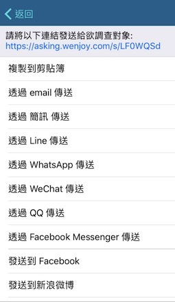 另外發問卷的管道很多,都是我們生活中常用到的,但如果剛好跟客戶有見面的話,通常我會直接讓他掃描QRcode,就可以馬上作答,然後我會在旁邊standby,適時的補充說明,這樣客戶對你的印象會比較好,也可以避免客戶草率作答