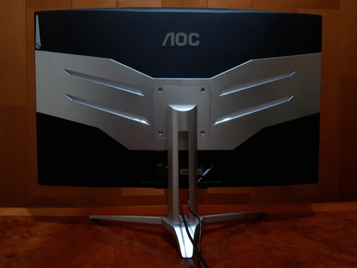 ▲AOC AGON AG322FCX 曲面液晶螢幕本體現身,整體採用銀黑的色調風格特色,讓人一眼難忘後方的支架組可做角度的調整,也可再另行拆卸搭配壁掛或臂架使用。
