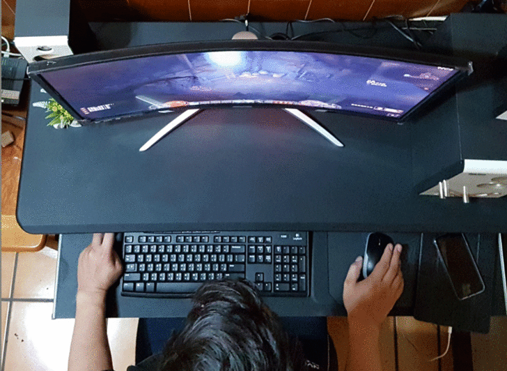 ▲在這為電競而生的85% NTSC廣色域、8000萬:1動態對比度高清晰、大畫面、高刷新率、流暢度爆錶的絢爛新視界裡,跟以往只有18~22吋的平面螢幕視野所帶來的感受完全不同呀,好想說瑞凡,我們回不去了!