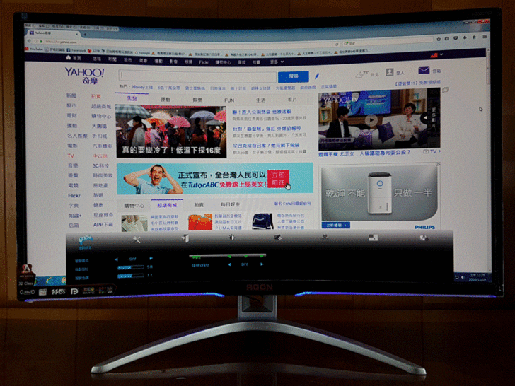 ▲AGON AG322FCX曲面電競螢幕:播放Meet Colors!台灣(畫質可調整至1080p FHD播放)