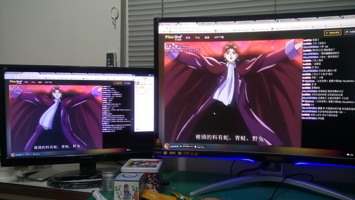 ▲兩台螢幕呈現同一個動畫畫面相比較