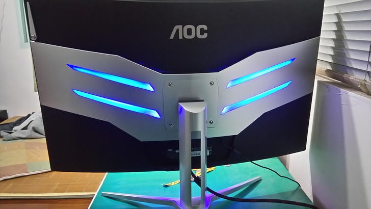 這一次AOC在AGON曲面螢幕所加入的燈光效果,雖然沒有呼吸燈部分可以讓玩家調整,不過以螢幕背後的情境燈光效果則是和螢面前AGON旁兩側燈光是相互應的哦!