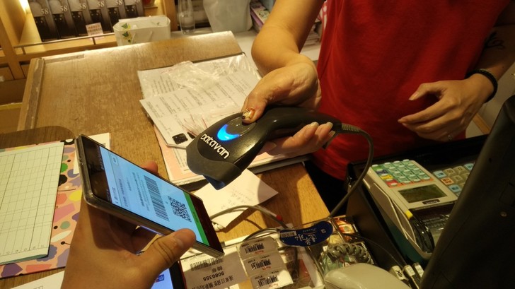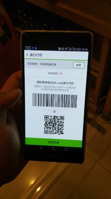 這次使用綁定中國信託高島屋聯名信用卡的條碼付款,掃碼”逼”一下結帳完成,比刷卡還快。