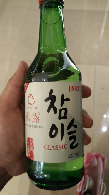 走出大食代,看到韓國名產展,有太陽的後裔中柳大尉與徐上士愛喝的燒酎(韓語:소주/燒酒),想說入秋天氣涼需要保暖,馬上買了四瓶。