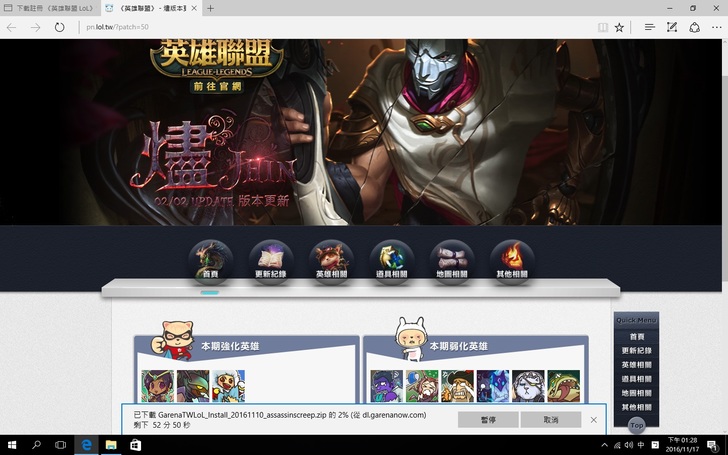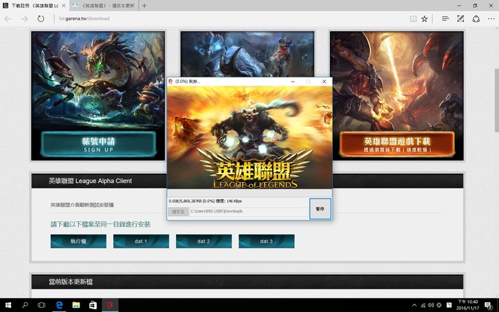 下載英雄聯盟中、實測有5G多可惜家中網路頻寛不足未能測試XD