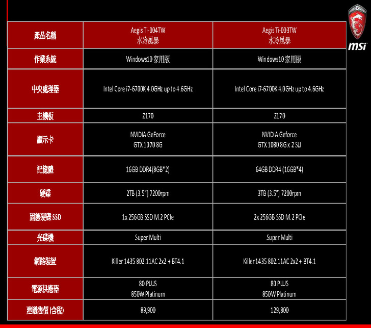 當然使用了NVIDIA SLI 技術(雙顯卡SLI 技術)…. 微星GAMING顯卡在新的Twin Frozr散熱VI設計- 提升14% GPU頻率- 降低35% 噪音- 減少20% 顯示卡熱能,CUP也用了英特爾第六代 Skylake 處理器 I7