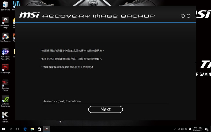 MSI貼心附上的工具軟體 RECOVERY IMAGE BACKUP