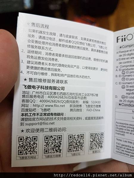 【▼】FiiO X1 II隨身入門無損音樂播放器保固卡詳細說明防偽方式及售後服務等連絡方式。
