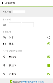 設定完綁定帳單後,便能設定停車代收繳費,目前支援三大都會區,