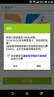 轉換成電子錢包的費用部分, 目前到年底(105/12/31)前升級NFC SIM卡與記名HappyCash有錢卡─免費(原價換卡300元/記名100元),悠遊卡記名優惠已於10/31結束。