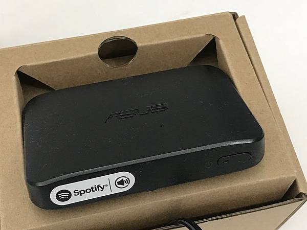 另一側有一個開關按鍵,還有貼了一個 Spotify 的標籤。說明一下, Spofity 是提供音樂串流服務,有強大的資料庫,跟 KKbox 很像,現在很夯. 提供網頁登入 (免費服務,可用 Facebook 帳號登入,但有廣告) , 手機登入 (付費才可用),