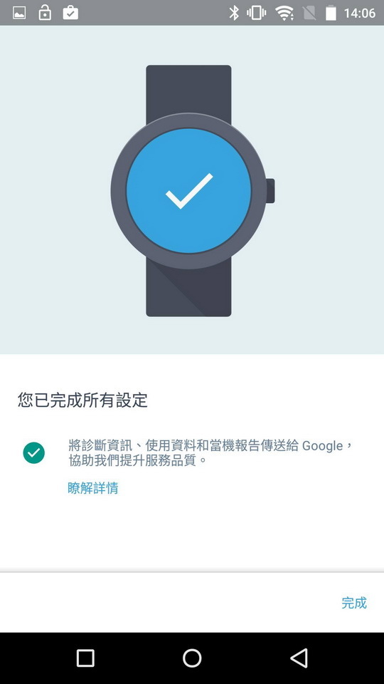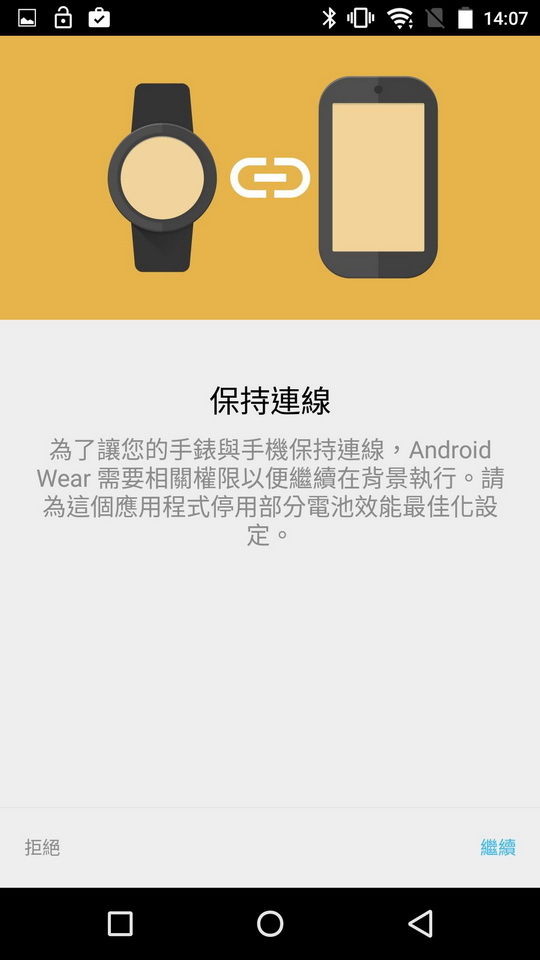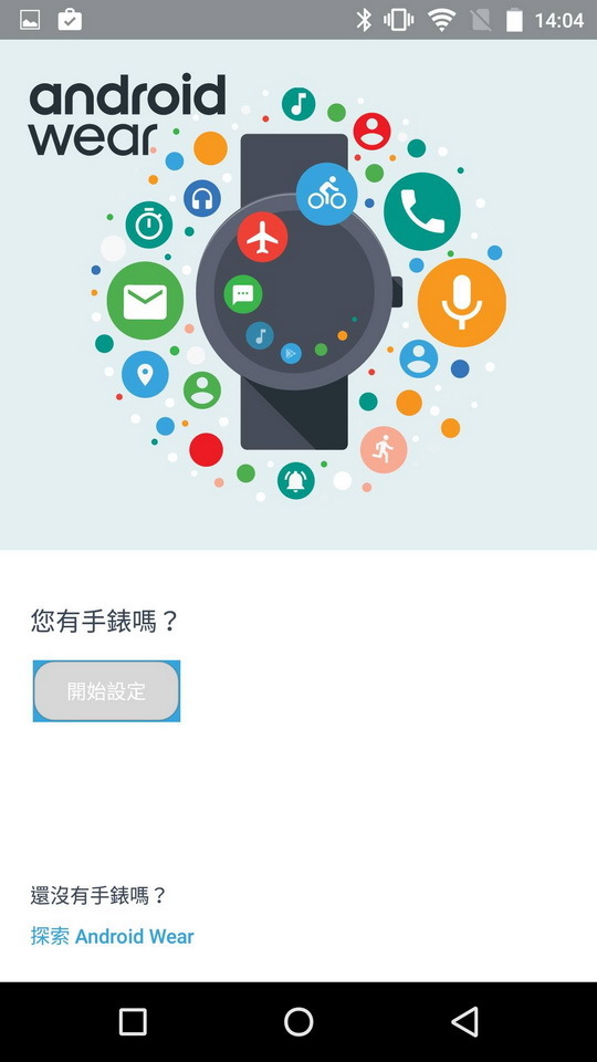 ▼ 手機安裝好 Android Wear應用程式 以後,依照指示就可以開始設定。