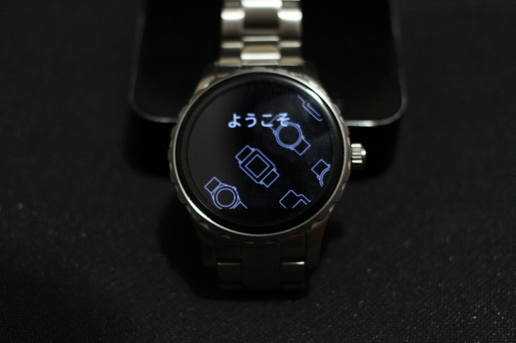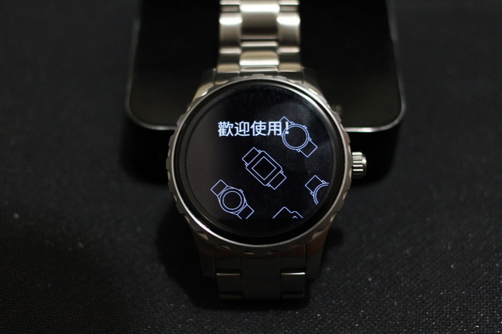 ▼ 還沒設定及配對過的 Fossil Q,錶面會不斷的跑出各國語言的歡迎使用字樣,直到你依指示滑開觸控式螢幕。