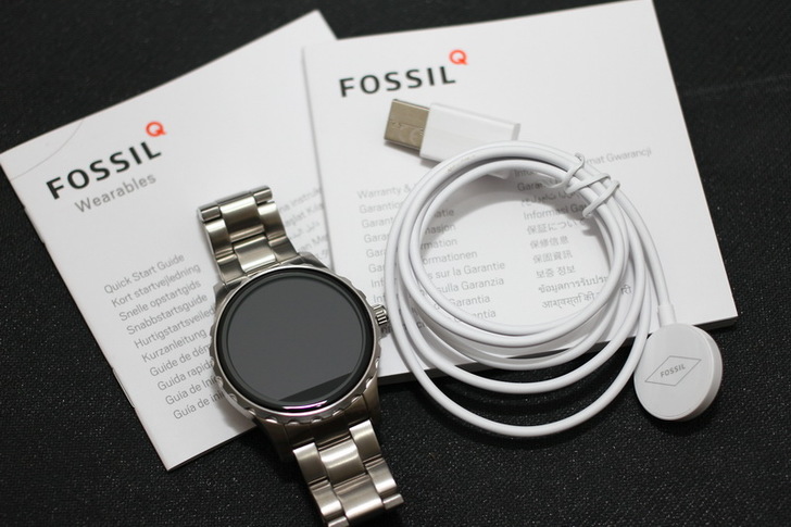▼ 內容物很簡潔跟明瞭,就是 Fossil Q Marshal錶款本體、無線的磁吸式充電線(磁吸頭上面還很特別的有 Fossil的LOGO)、說明書。