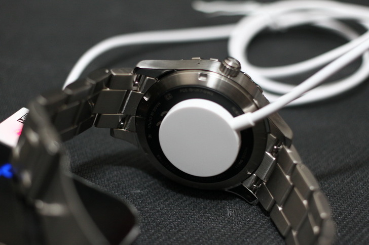 ▼ 磁吸頭充電時是吸附在錶背上面,Fossil的LOGO附貼在錶上。