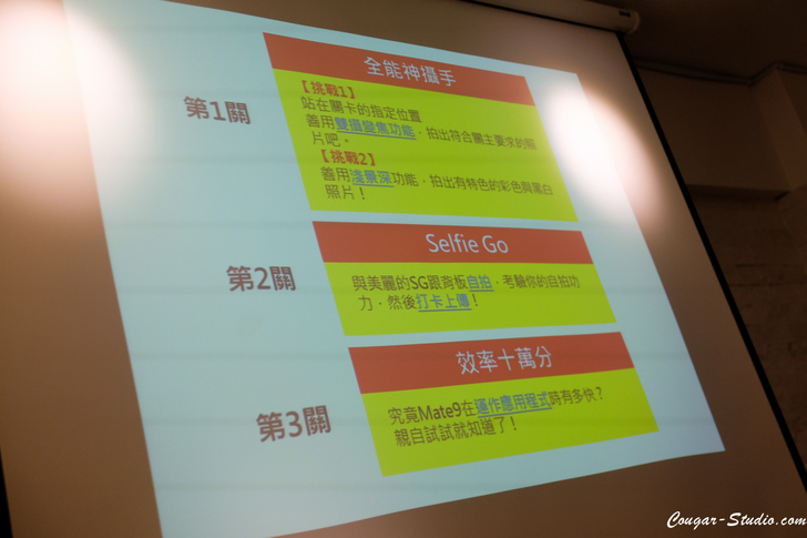 第一關的全能攝手, 就是要用Mate 9 拍攝幾個指定的拍攝模式, 全景, 淺景深, 彩色, 黑白, 雙倍焦 很有意思, 但是因為是比賽, 大家手忙腳亂^^