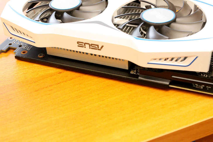 雖然說沒有強化背板,但還是有防彎的機制,配置了防彎卡橫桿在顯示卡的上側。