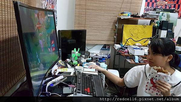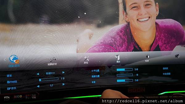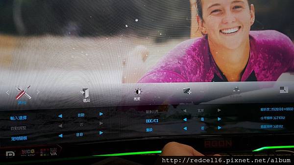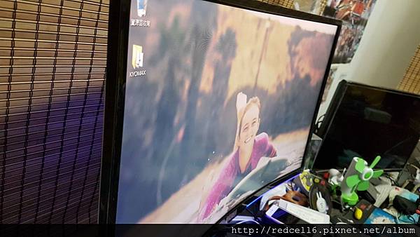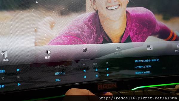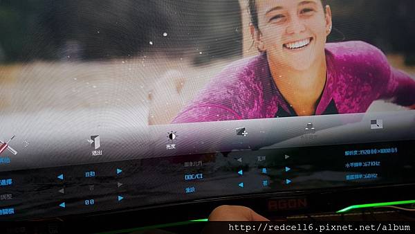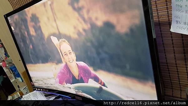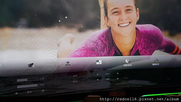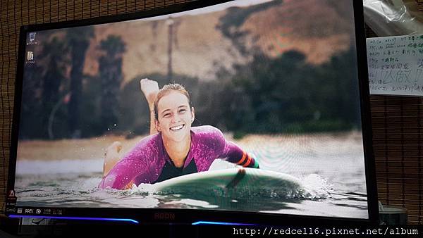 【▼】曲面的AOC AGON AG322FCX 32吋曲面電競顯示器跟美少女衝浪板主題很搭。