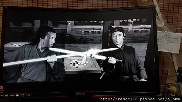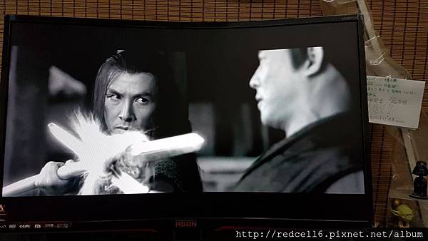 【▼】AOC AGONAG322FCX 32吋曲面電競顯示器播放影片黑白片段也顯示的層次分明。