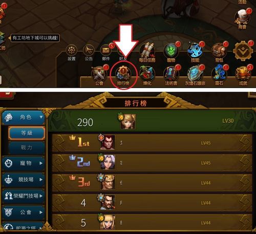 如果要查看目前最高等級的玩家,可以透過排行榜裡面查詢到唷~