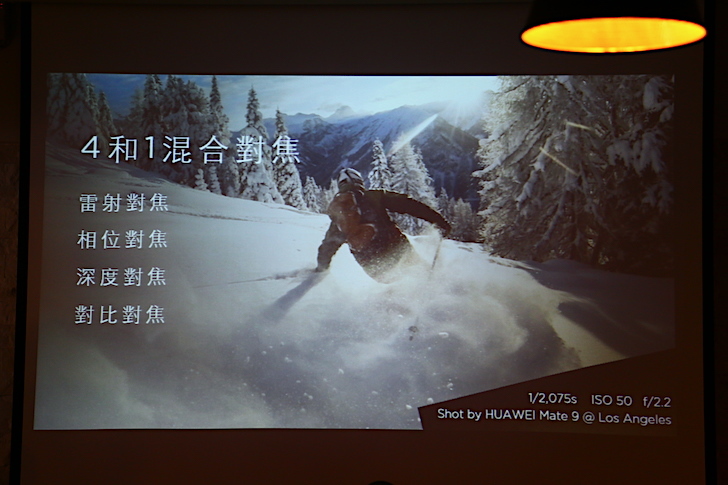 而華為 Mate 9、Mate 9 Pro 更是提供少見的 4 合 1 混合對焦技術。而什麼是 4 合 1 混合對焦技術呢?就是在相機模組中同時內建了雷射對焦、相位對焦、深度對焦、對比對焦,而這些對焦技術的應用,除了能讓成像品質有所提升外,也能加強動態攝影的準確度。