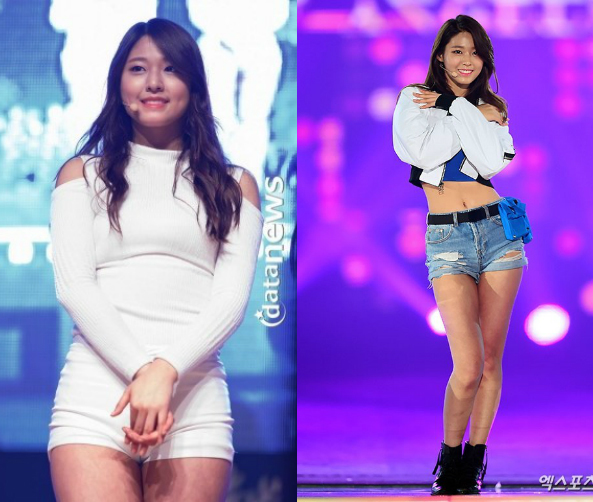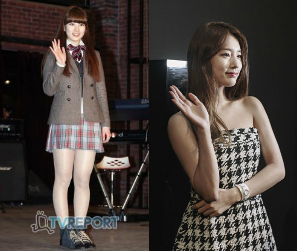 剛出道的秀智有點嬰兒肥的稚氣,靠著規律的運動及雞胸肉+糙米飯的飲食控制,讓秀智不僅臉蛋變尖了,整個也看起來漂亮、更有女人味了!