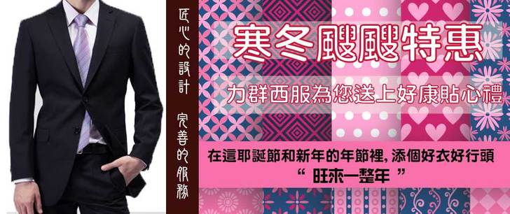 感謝大家以來長期對我們的支持,在這景氣還在慢慢復甦的時後,特別推出好康貼心好禮省錢方案, 專業的手工訂製和符合潮流的時尚設計, 讓大家穿得出有型又有品味。因布料有所不同價格會以所不同歡迎來電洽詢(0800-666-518)