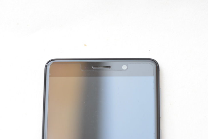 機身正面上方, 中間的是話筒, 右邊的是前鏡頭, 左邊有個光線感應器與通知呼吸燈