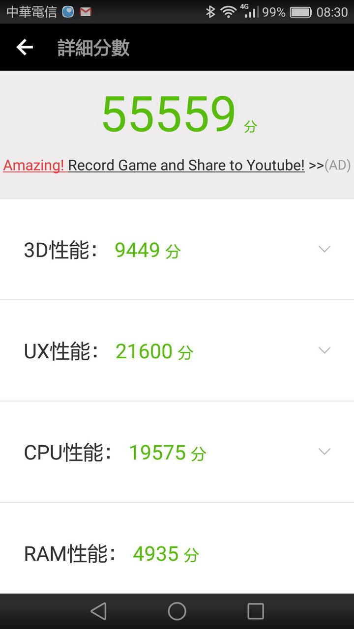 在安兔兔的評分中, 只有55000分上下, 中規中矩的, 算還可以